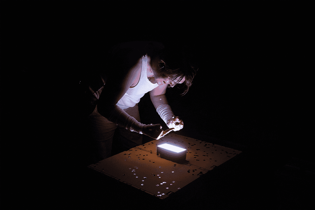 Publikum sidder midt på scenen og er omringet af højtalere og selfie lys, der fremkalder forestillingen. Rundt om dem, famler i mørket et ensomt og desperat menneske efter selskab – og publikum kommer på den måde helt tæt på Morten Grove Frandsens imponerende operastemme.